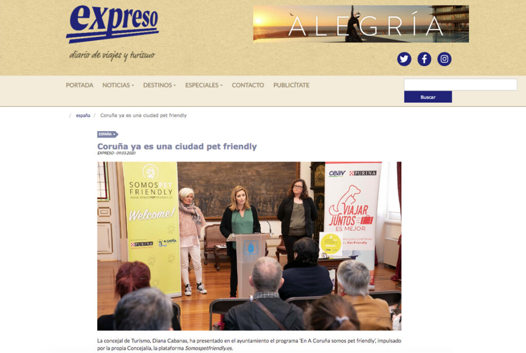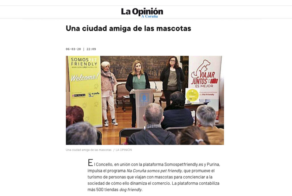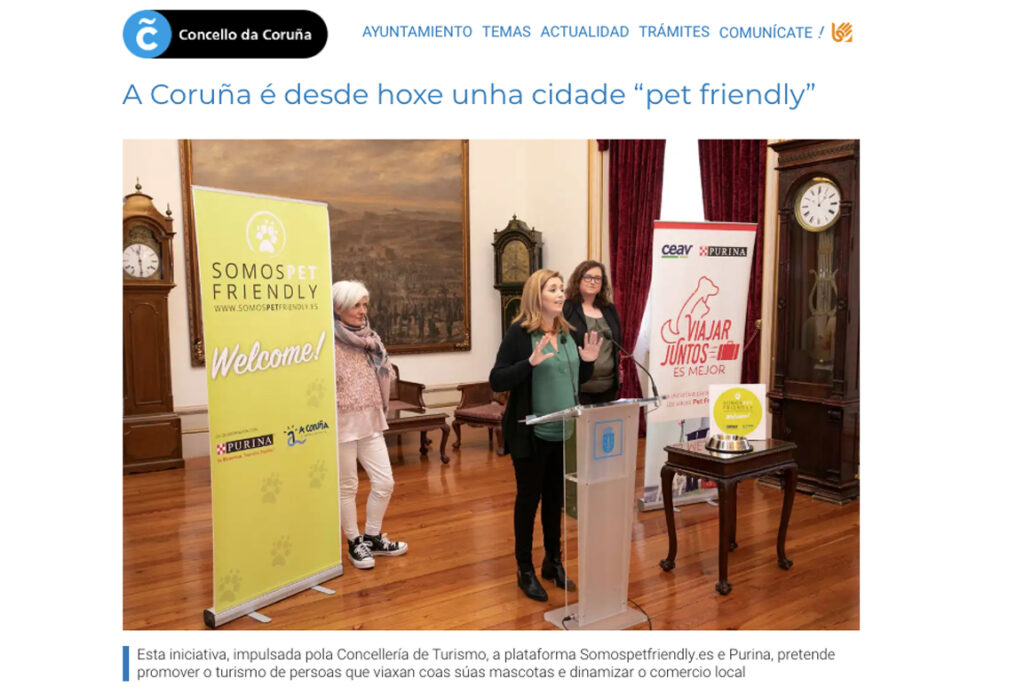 La Opinión A Coruña | El Concello, en unión con la plataforma Somospetfriendly.es y Purina, impulsa el programa Na Coruña somos pet friendly, que promueve el turismo de personas que viajan con mascotas Link