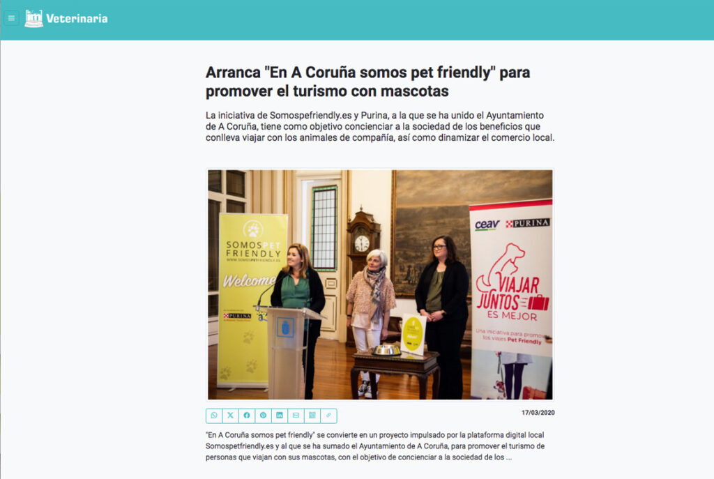 im Veterinaria | La iniciativa de Somospefriendly.es y Purina, a la que se ha unido el Ayuntamiento de A Coruña, tiene como objetivo concienciar a la sociedad de los beneficios que conlleva viajar con los animales de compañía, así como dinamizar el comercio local Link